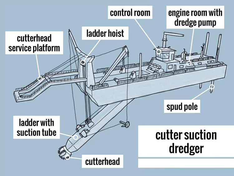 Kuenzanisa neGrab Dredgers: Cutter Suction Dredger yeRwizi Dredging inoita mashandiro anoenderera mberi nekunyanya kushanda nesimba; grab dredgers vanoita cyclic mashandiro ane zvishoma zvishoma, asi akakodzera nzvimbo dzine matombo makuru mazhinji nemarara.